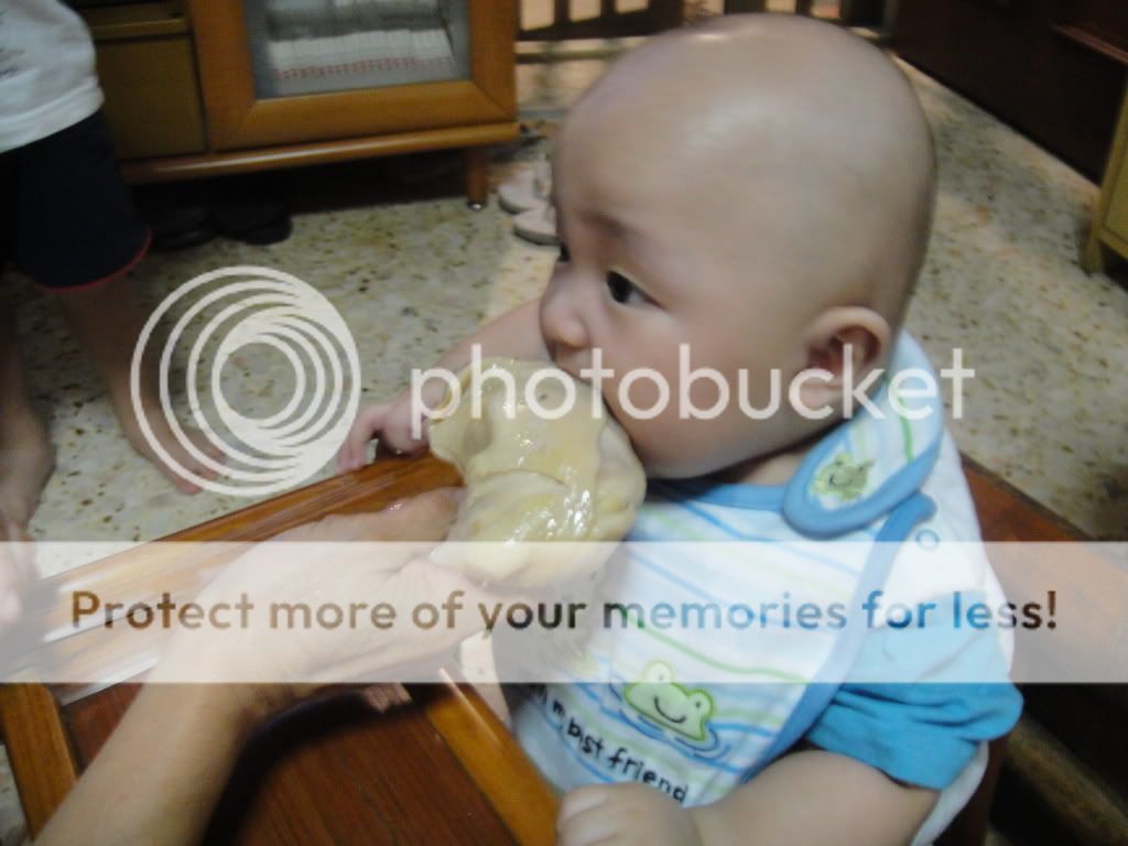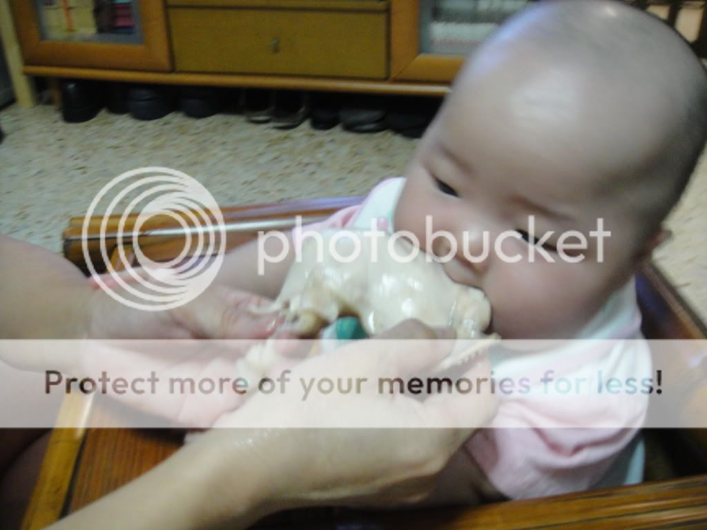 ( why babies are to go tru this stage ? It's because they had been v v vegetarian since birth. so on their 4mth month, they are to suck or lick the chicken drumstick to let them eat the chicken. )